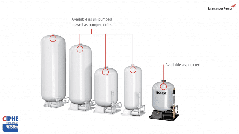 An accumulator tank stores water under pressure to provide an excellent solution for properties requiring additional boost to mains water flow and pressure