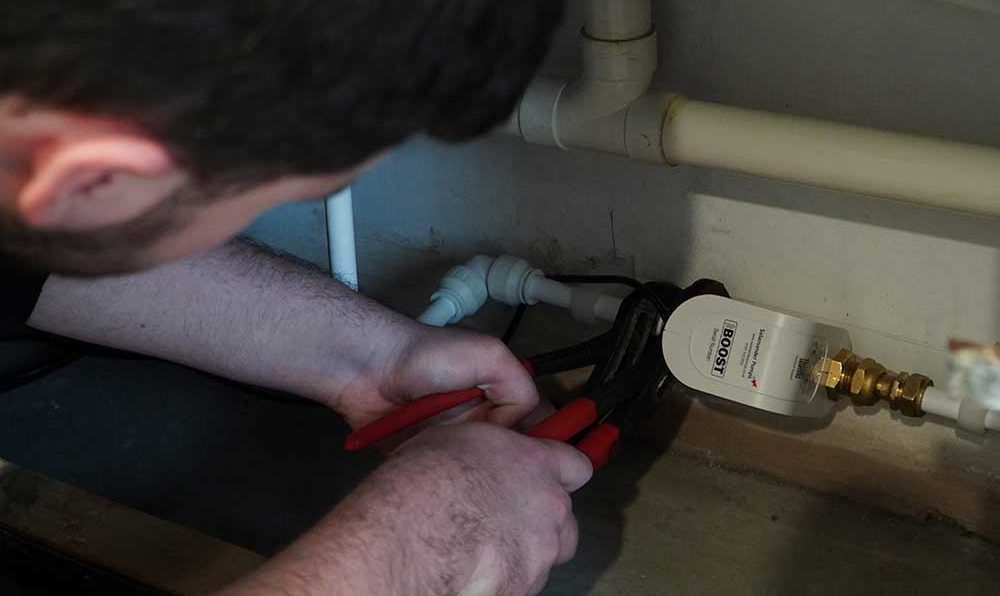 To successfully activate the pump on first operation: Connect the pump to the pipework, turn on incoming water supply and ensure that all isolating valves are open. Open an outlet and check for natural flow. Ensure all air is purged from the system and inspect connections and connecting pipework for leaks. Plug in electrical supply to pump and turn on. The flow will now increase as the pump activates. Close the outlet fully and the pump will stop.