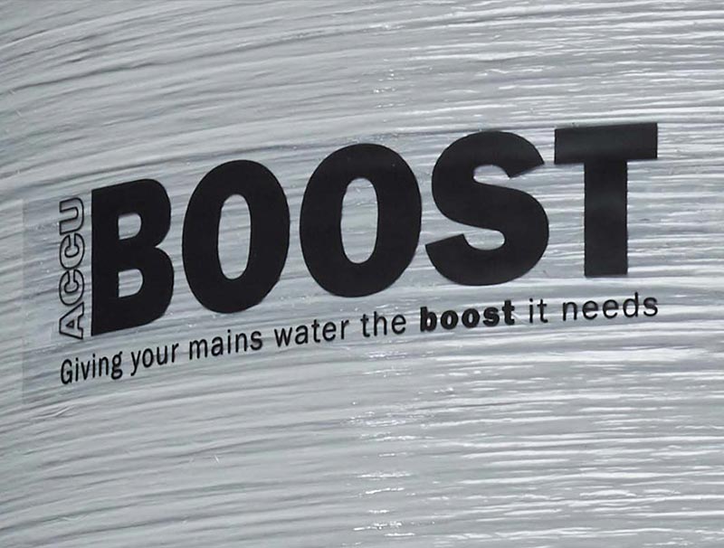 The AccuBoost 330L unpumped model has a pressurised vessel water storage capacity of 150.5L. The tank will supplement the water supplied by the mains providing an additional 18L/min into the system.
